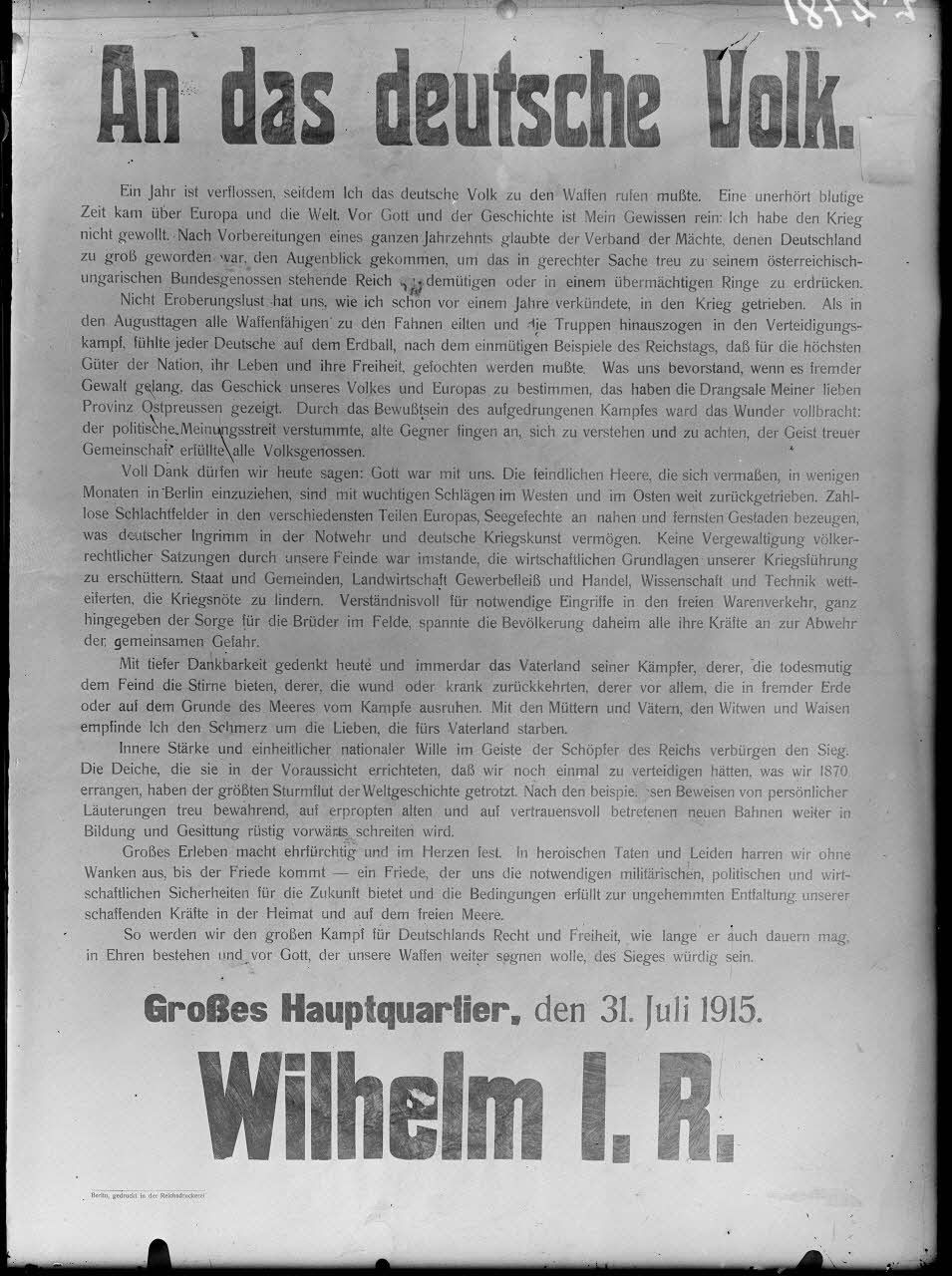Paris, 6 avenue Malakoff. Musée franco-américain. Affiche allemande. "An das Deutsche Volk". [légende d'origine]