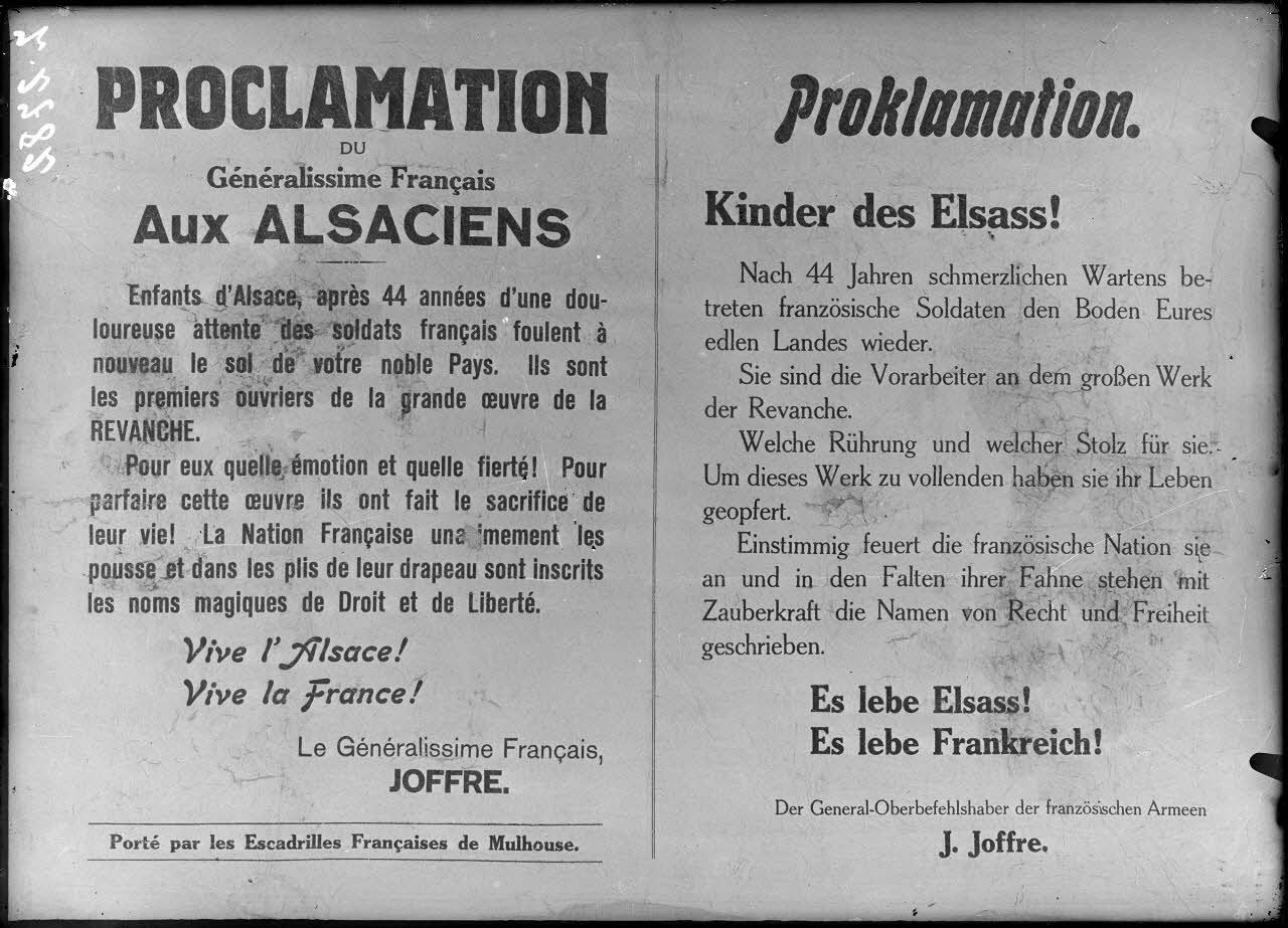 Paris, 6 avenue Malakoff. Musée franco-américain. Affiche française. "Proclamation du Généralissime français aux alsaciens". [légende d'origine]