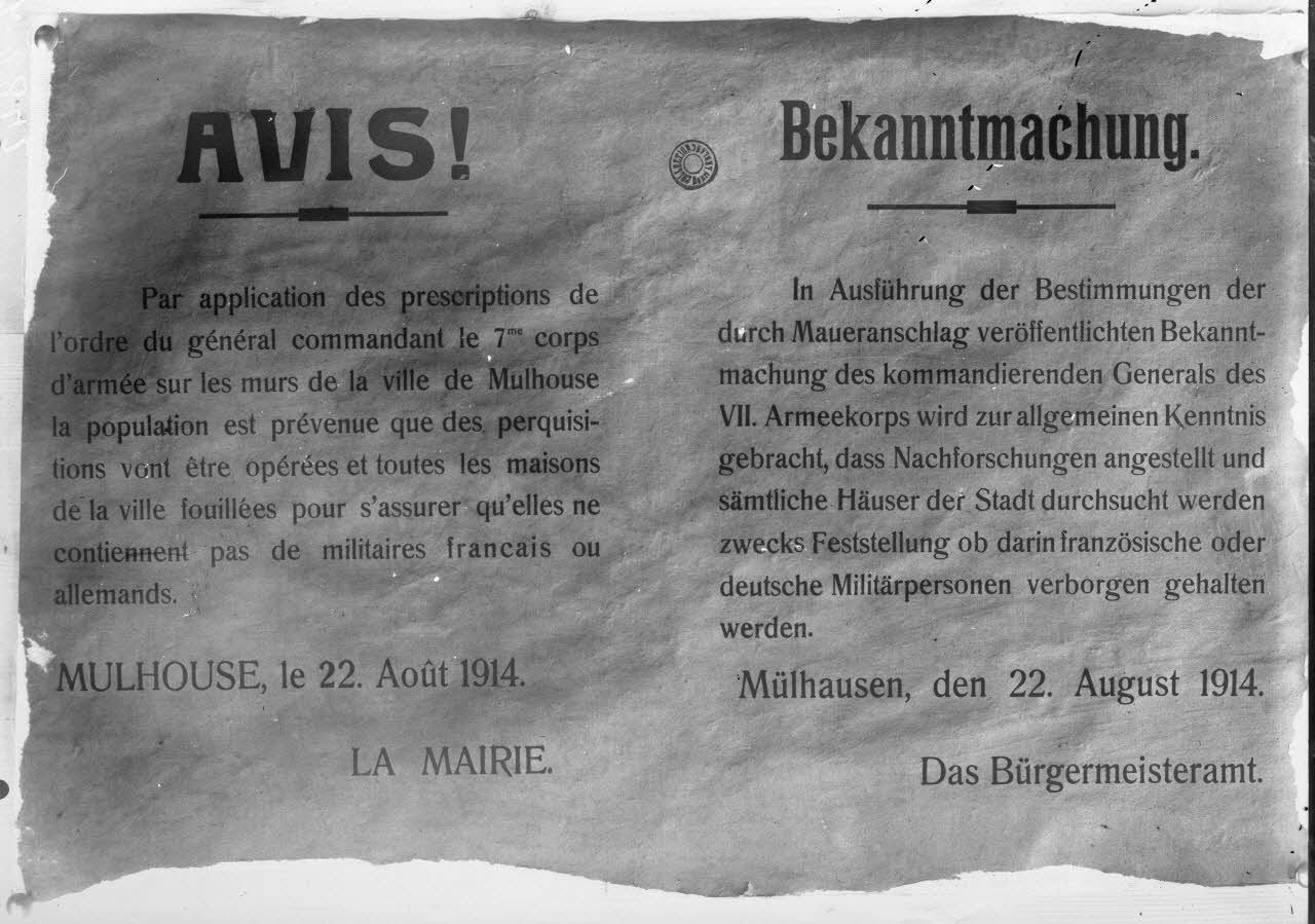 Paris, 6 avenue Malakoff. Musée Leblanc. Proclamation allemande à Charleroi.