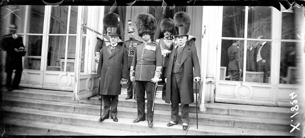 Paris, à l'ambassade d'Angleterre, l'ambassadeur des Etats-Unis, l'ambassadeur d'Angleterre, le chef de la musique anglaise et le chef de la garde républicaine.