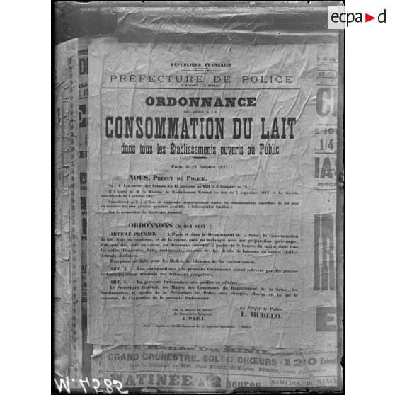 Paris, Affiche. Ordonnance relative à la consommation du lait.