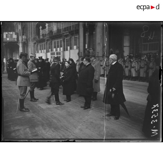 Affiches / Le déchargement des marchandises quai d'Austerlitz / La remise de diplôme aux famillles de soldats morts pour la France / Portrait des ambassadeurs de Belgique et du Luxembourg.