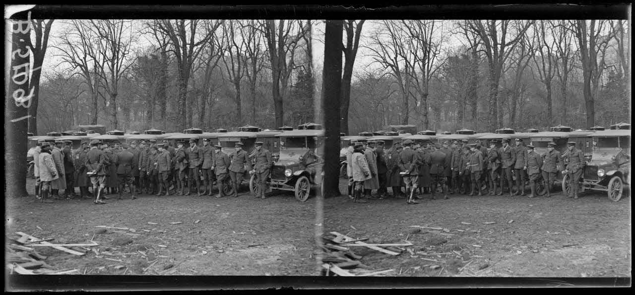 A l'hôpital militaire installé au Grand-Palais, l'opérateur photographie la dernière phase de l'opération de greffe osseuse sur deux soldats mutilés. Il prend aussi des vues de l'ambulance américaine installée au 21 rue Raynouard, dans le 16e arrondissement. Il s'agit du groupe des volontaires de l'AAFS (American Ambulance Field Service) présents en France depuis le début de la guerre pour participer à l'évacuation des blessés.