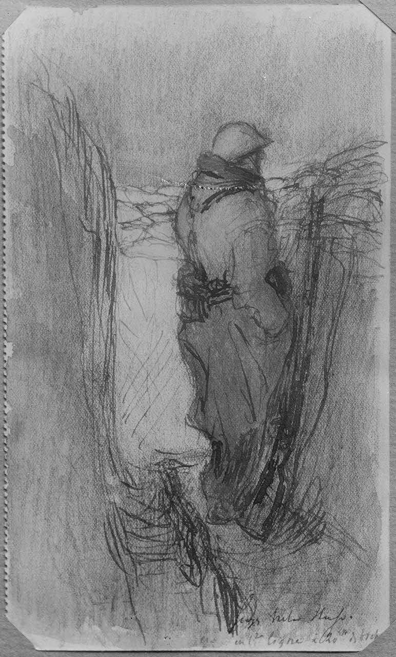 Paris, aux Arts décoratifs, croquis de guerre, de Georges Victor Hugo, Le barda dans une tranchée.