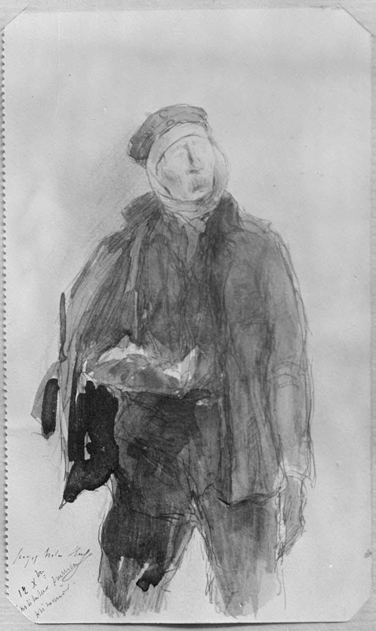Paris, aux Arts décoratifs, croquis de guerre, de Georges Victor Hugo, Instituteur prussien prisonnier. [légende d’origine]