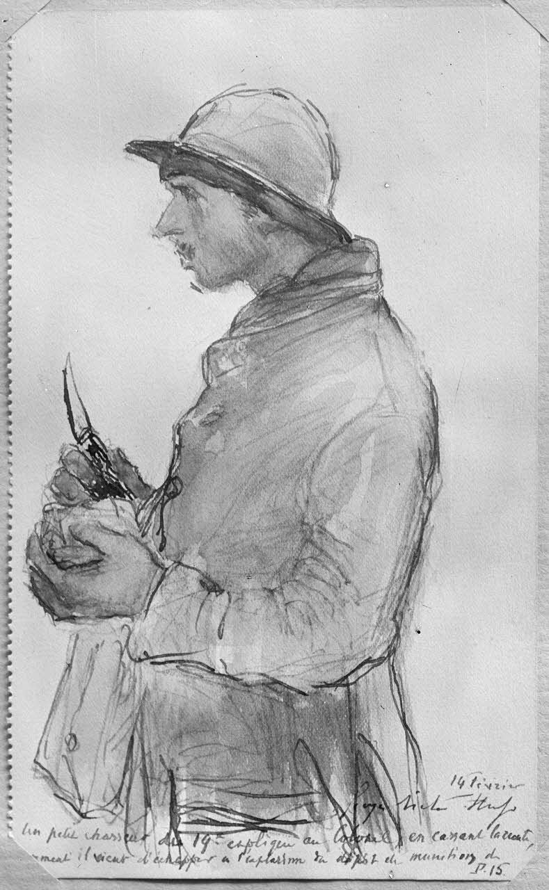 Paris, aux Arts décoratifs, croquis de guerre, de Georges Victor Hugo, Un rescapé de l’affaire du 27 février.