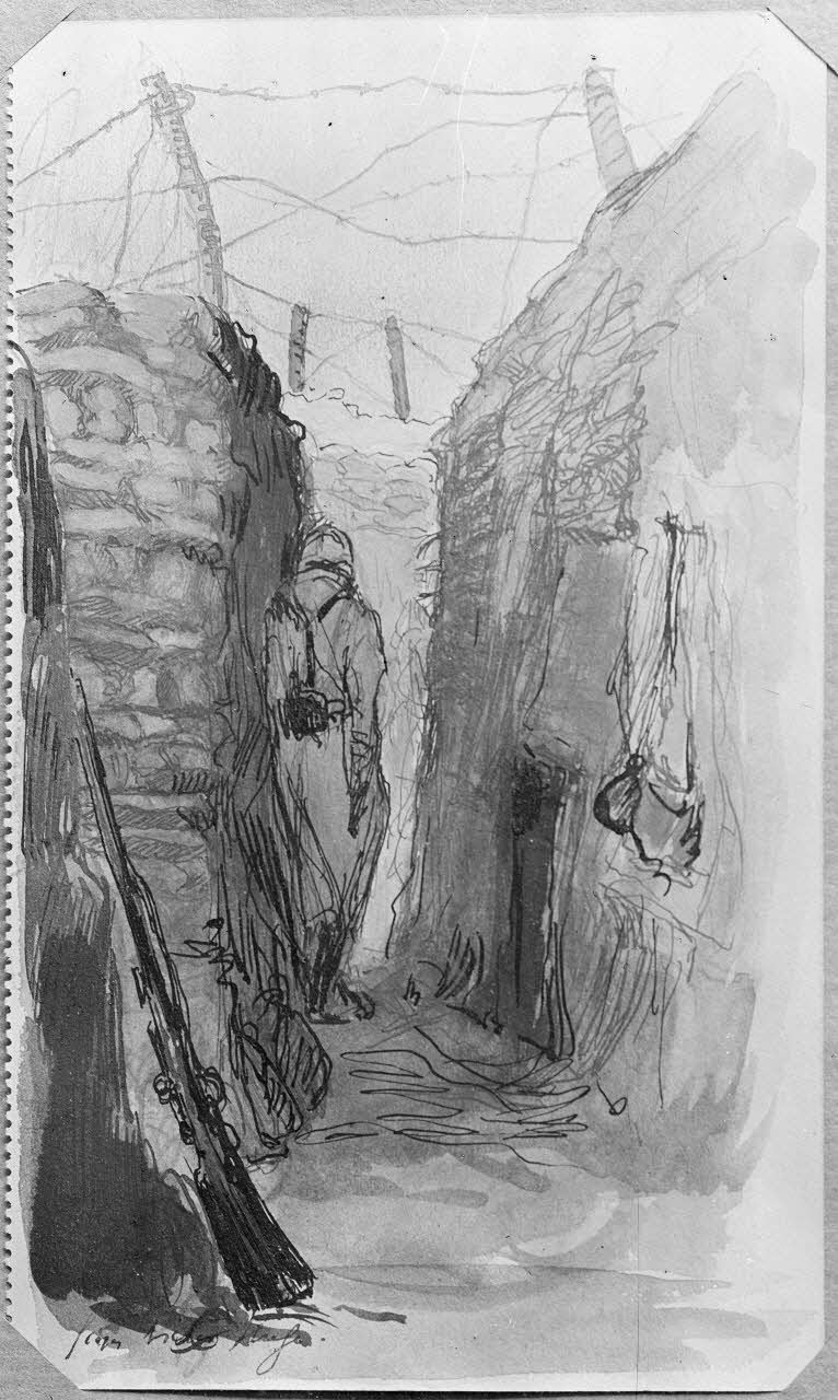 Paris, aux Arts décoratifs, croquis de guerre, de Georges Victor Hugo, Le boyau d’Evian.