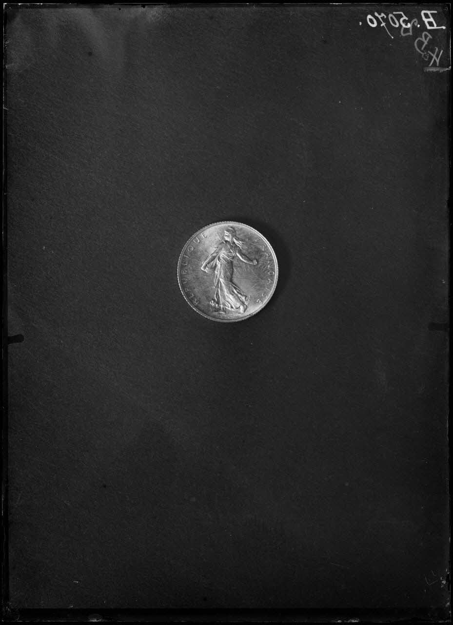 Paris, Bibliothèque nationale, pièce d'argent France. Semeuse de Roty 2 francs. [légende d’origine]