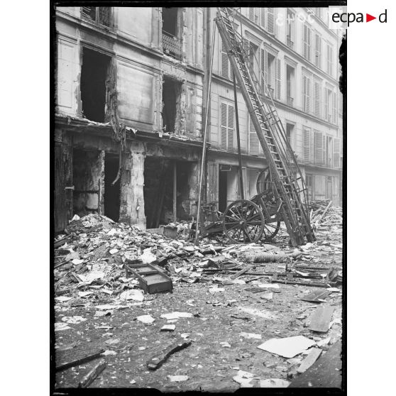 Paris, bombardement par avions, nuit du 12 avril 1918. Immeuble atteint au 27 rue Saint-Paul.