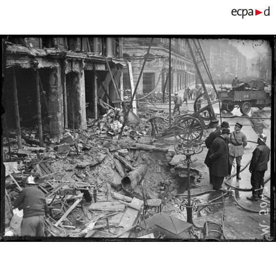 Paris, bombardement par avions, nuit du 12 avril 1918. Le terre plein devant le 14 rue de Rivoli.
