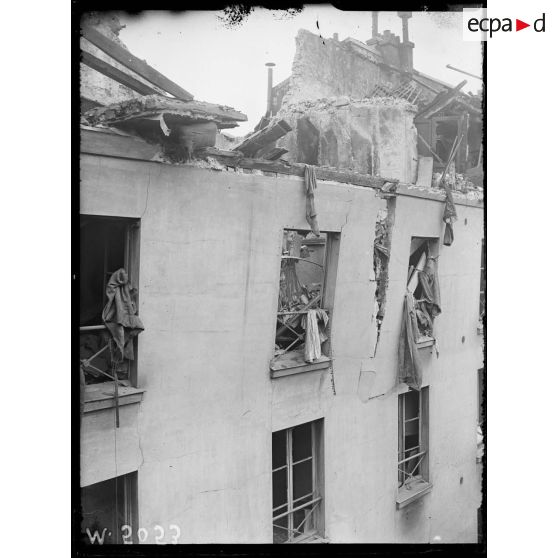 Paris, bombardement par avions, nuit du 12 avril 1918. Immeuble atteint au 18 rue des Ecouffes.