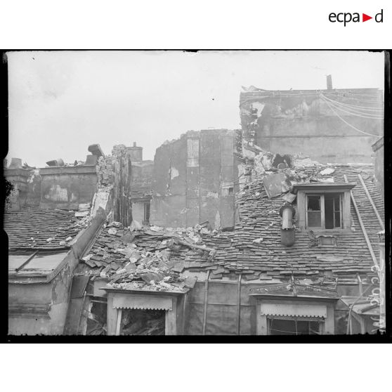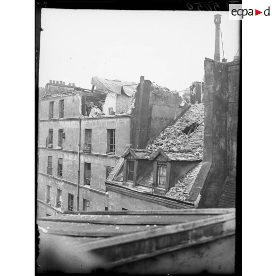Paris, bombardement par avions, nuit du 12 avril 1918. Immeuble atteint au 19 rue Charles V.