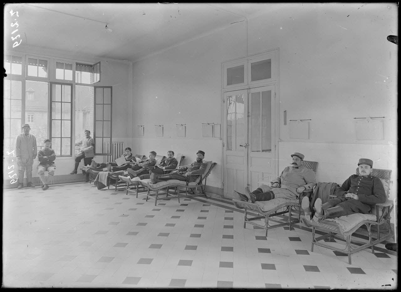 Greffe interfémorale dans le service du docteur Laurent, à l'hôpital du Grand-Palais. Les restaurants pour réfugiés. Le dispensaire Léon Bourgeois rue Vanneau à Paris.