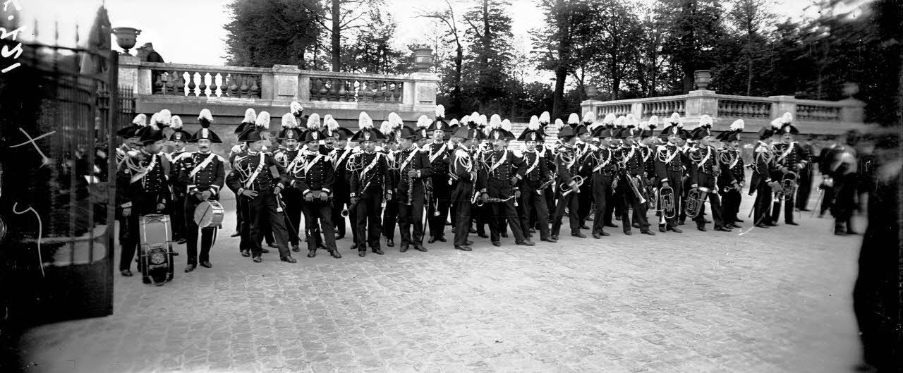 Paris. Festival donné au jardin des Tuileries par la musique des Carabiniers royaux d'Italie et la garde républicaine. La musique du régiment des carabiniers royaux d'Italie. [légende d'origine]