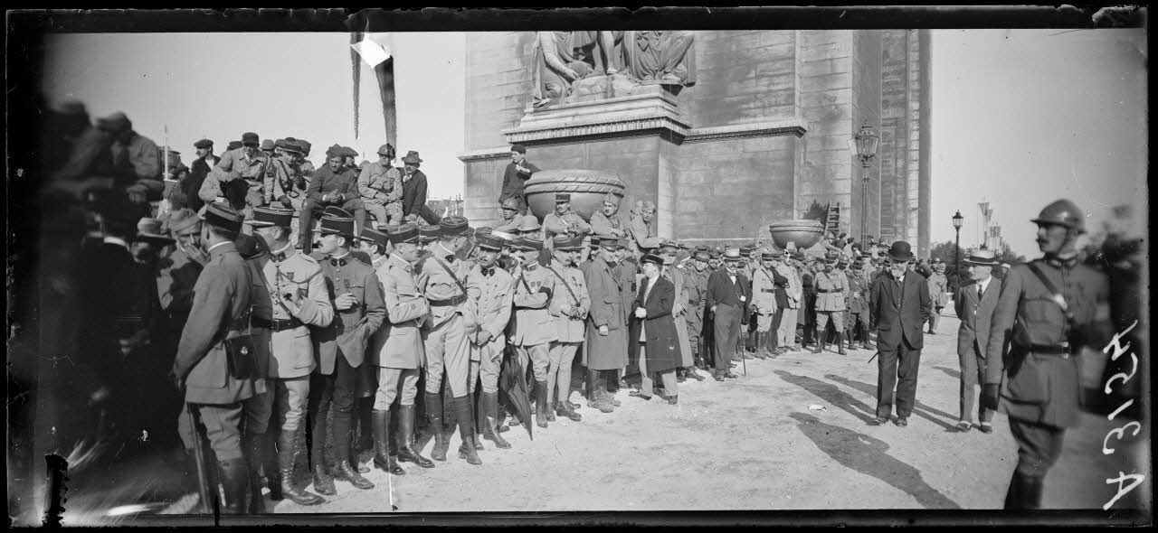 14 juillet Paris 1919. Vue du défilé prise de l'Arc de Triomphe.