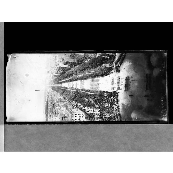 Vues du défilé prises de l'Arc de Triomphe (A3108 à A3126). La foule sur les Boulevards (A3127 à A3130, A3144 à A3146, A3168 à A3172). La foule place de l'Opéra (A3131 à A3135). La foule place de la Concorde (A3136, A3147-3148). La foule sur les Champs-Elysées (A3137 à A3143).et la place de l'Hôtel de Ville (A 3160-3161).