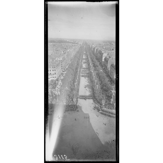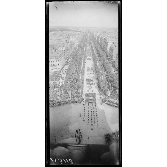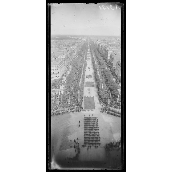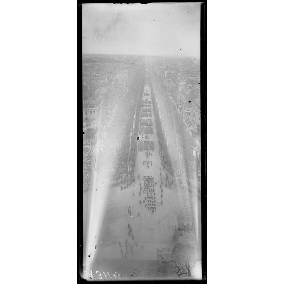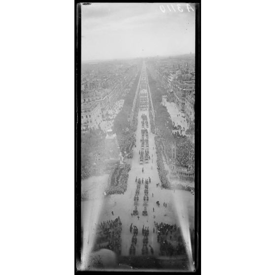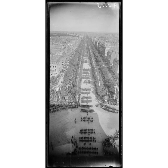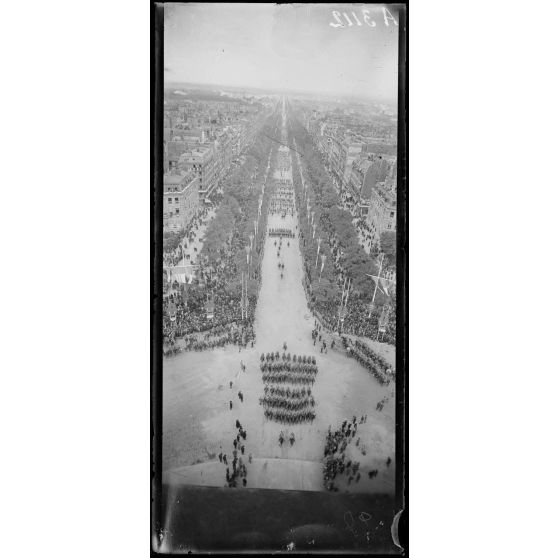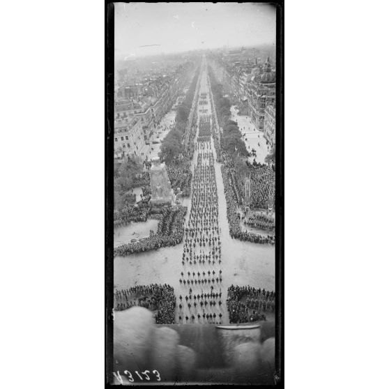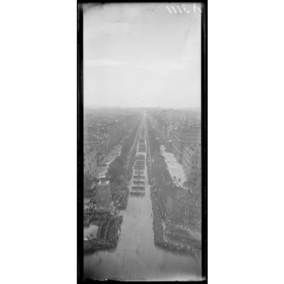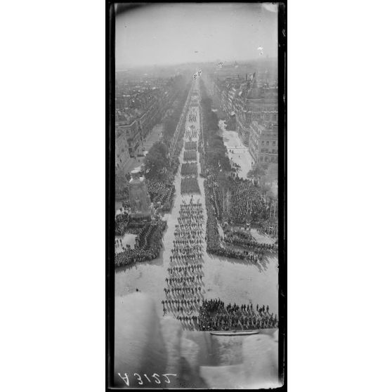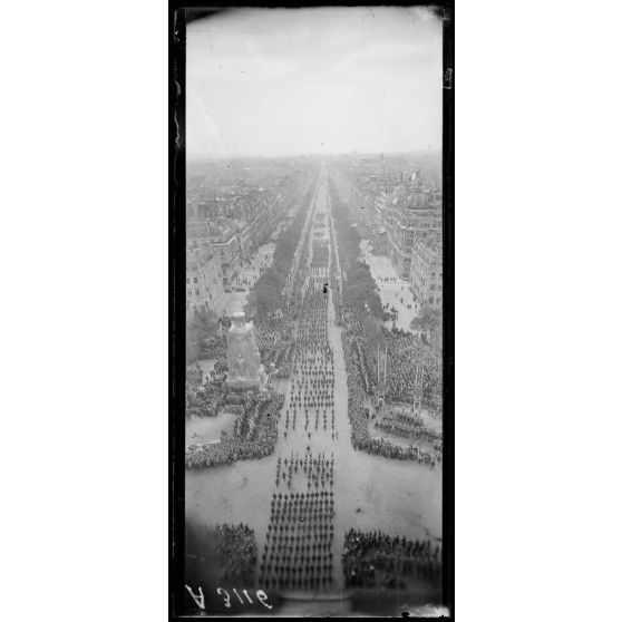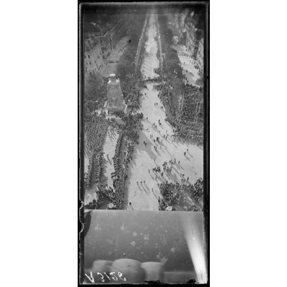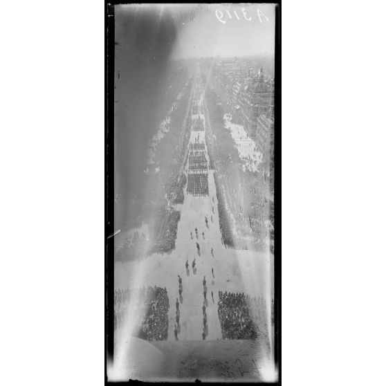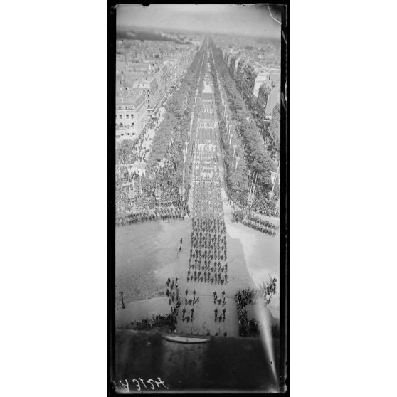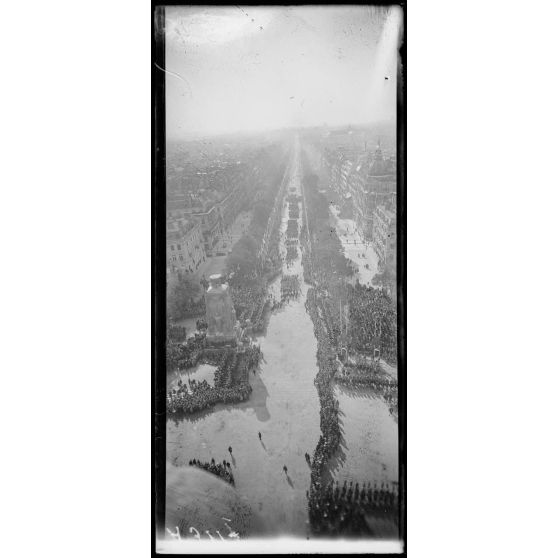 14 juillet Paris 1919. Vue du défilé prise de l'Arc de Triomphe.