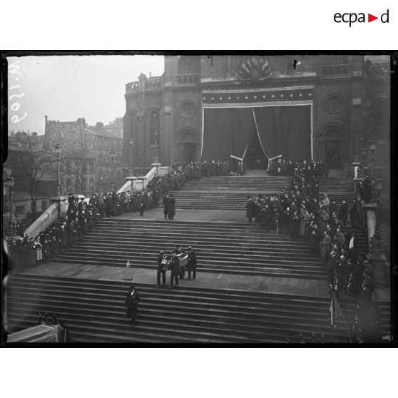 Les funérailles des victimes du Zeppelin à l'église de Notre-Dame de la Croix à Paris.