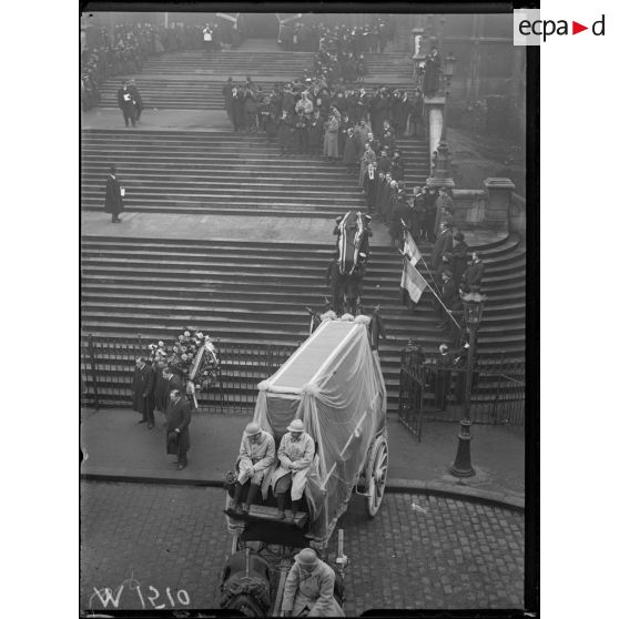 Paris, funérailles des victimes du Zeppelin. Les autorités civiles suivent le cortège. [légende d'origine]
