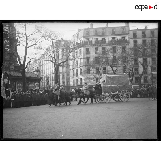 Funérailles des vicitimes du Zeppelin à Paris, le cortège des chars et des couronnes mortuaires.