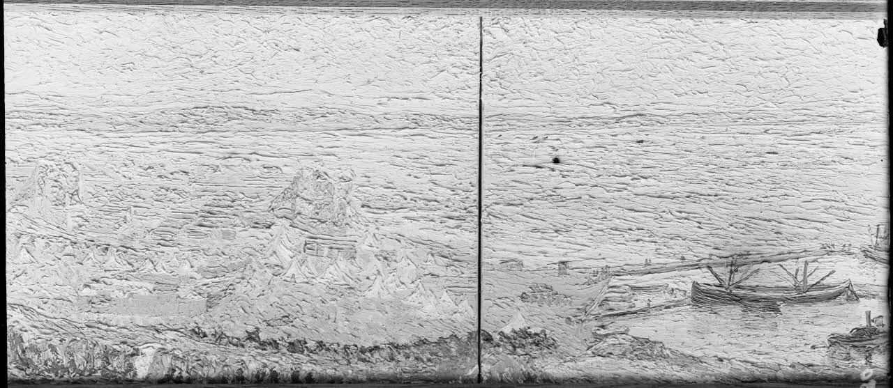 Paris, galerie Druet. Exposition d'oeuvres de Henry Valensi. Panorama du camp français pris des batteries d'Ertugrul.
