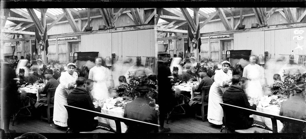 Paris. Gare de la Chapelle. Arrivée de grands blessés. Le repas. [légende d'origine]