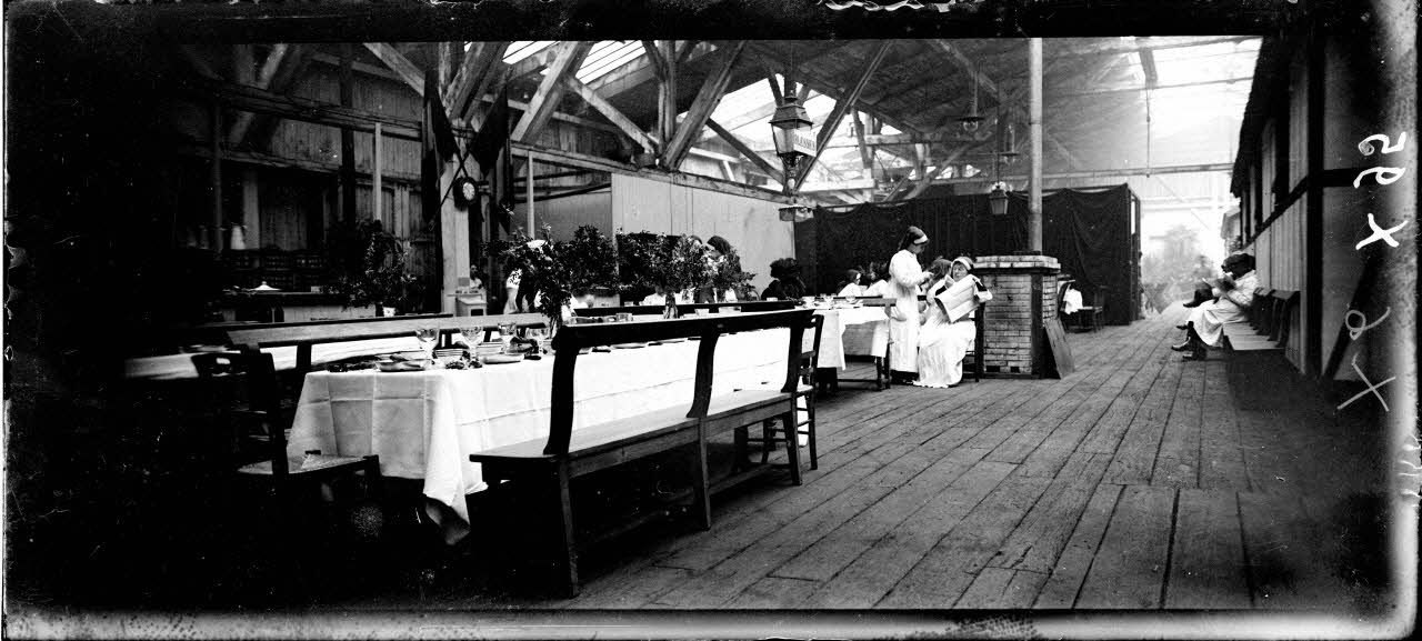 Paris. Gare de la Chapelle. Réfectoire préparé pour l'arrivée des grands blessés. [légende d'origine]