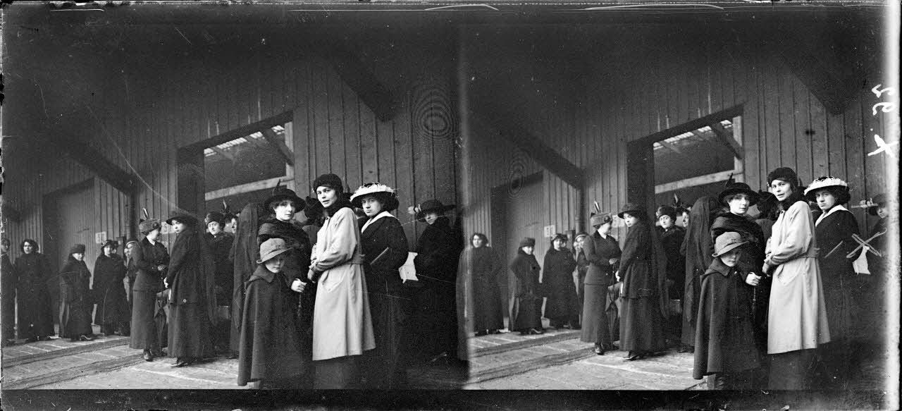 Paris. Gare de la Chapelle. Retour de grands blessés échangés. Attente de l'arrivée du train. [légende d'origine]