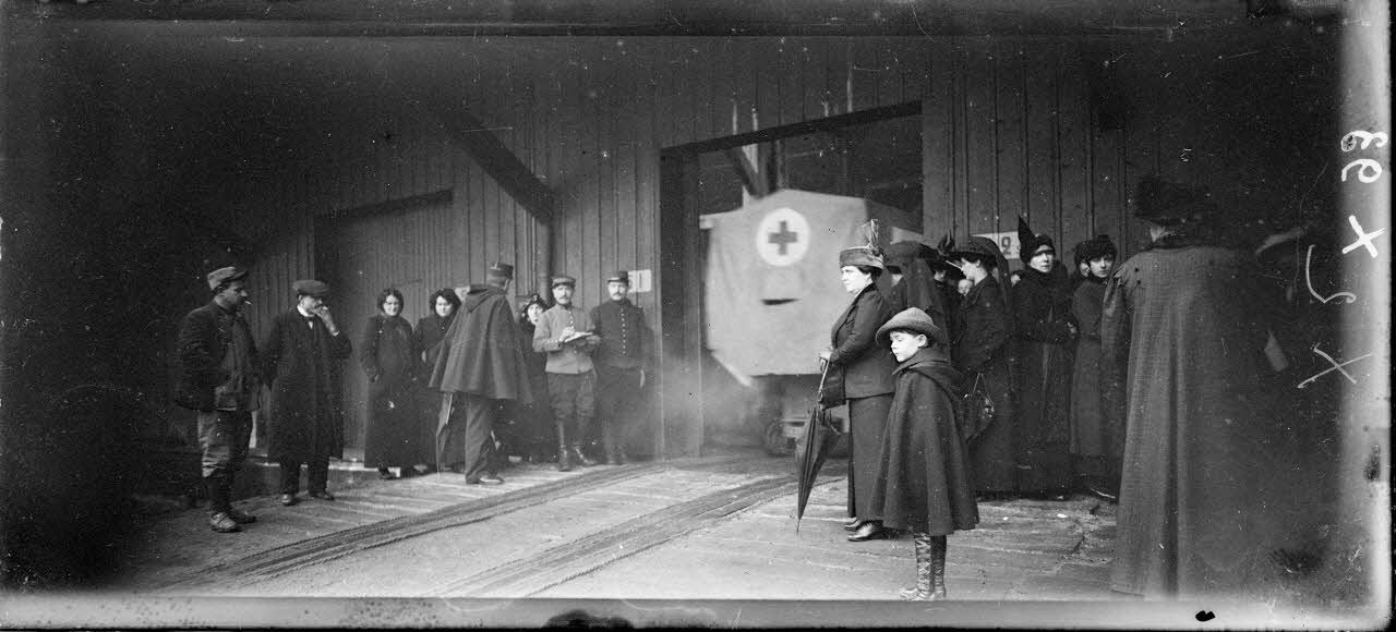 Paris. Gare de la Chapelle. Retour de grands blessés échangés. Les familles attendent le train. [légende d'origine]