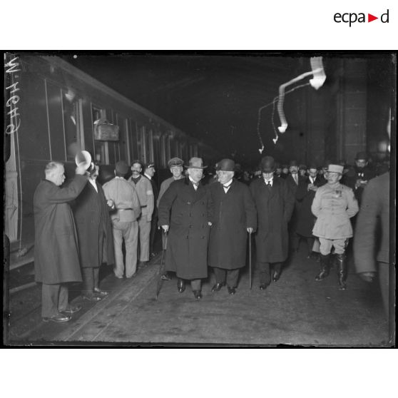 Nommé président du Conseil le 13 novembre 1917, George Clemenceau accueille David Lloyd Georges à la gare du Nord. Le premier ministre britannique arrive en France pour participer à une conférence sur le commandement de la marine alliée en Méditerrannée.