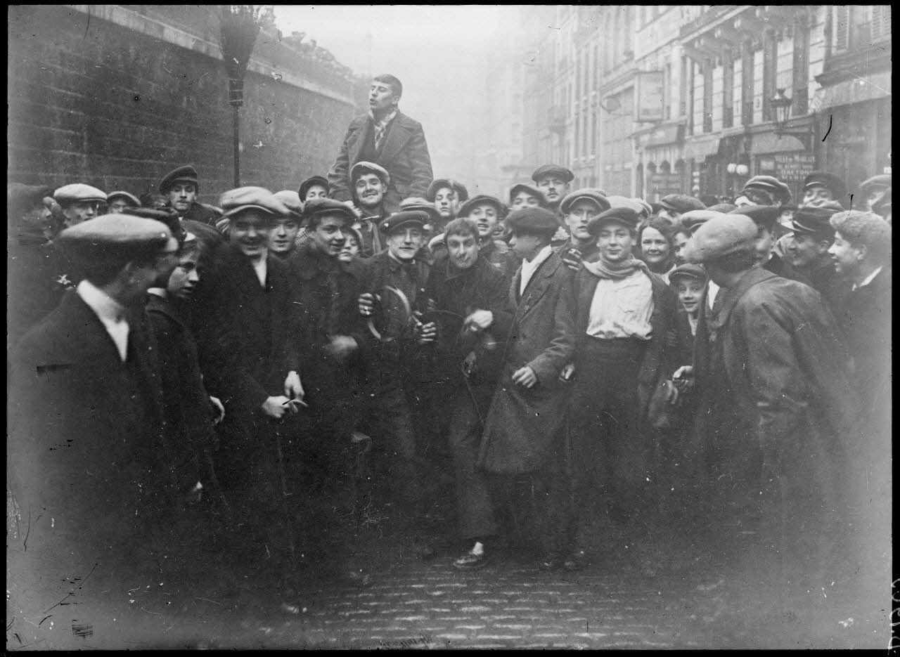 Paris gare Montparnasse, départ de la classe 17 dans la rue du départ. [légende d’origine]