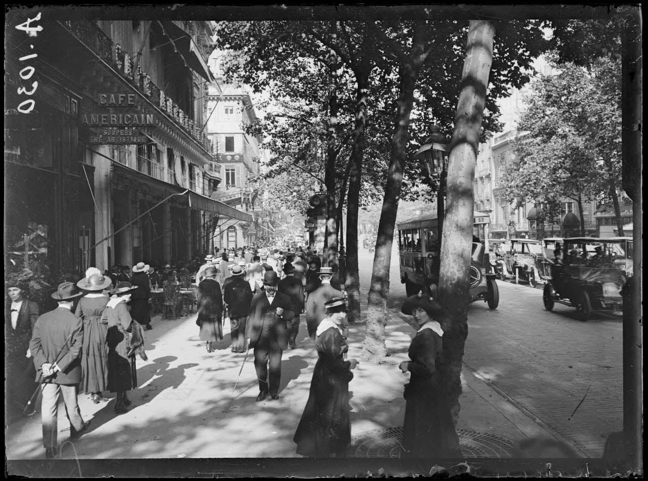 Paris. Grands Boulevards. Les promeneurs devant le café américain. [légende d'origine]