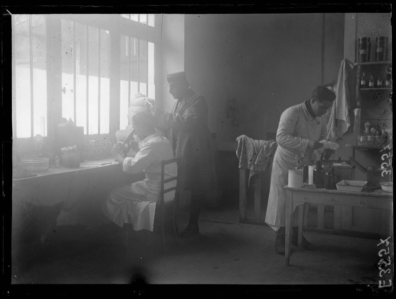 Paris. Hôpital militaire canin de la Bleue Bross. Le laboratoire. [légende d'origine]