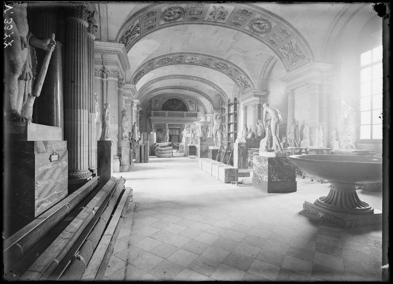 Paris, la réouverture du musée du Louvre. Une salle pendant la remise en état. [légende d'origine]