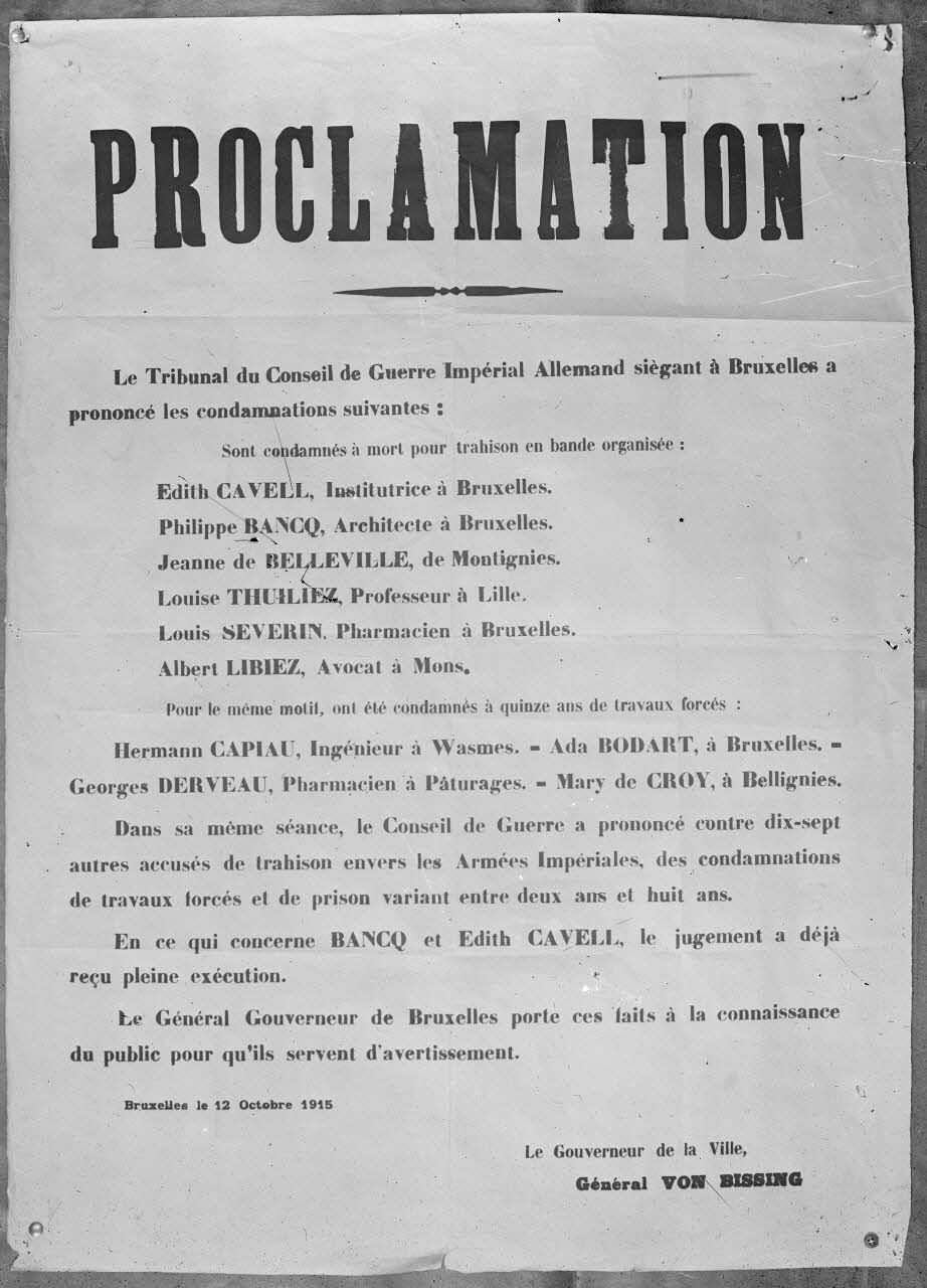 Paris. Musée Franco Américain M. Leblanc, 6 avenue Malakoff. Affiche. Proclamation (Von Bissing). [légende d'origine]