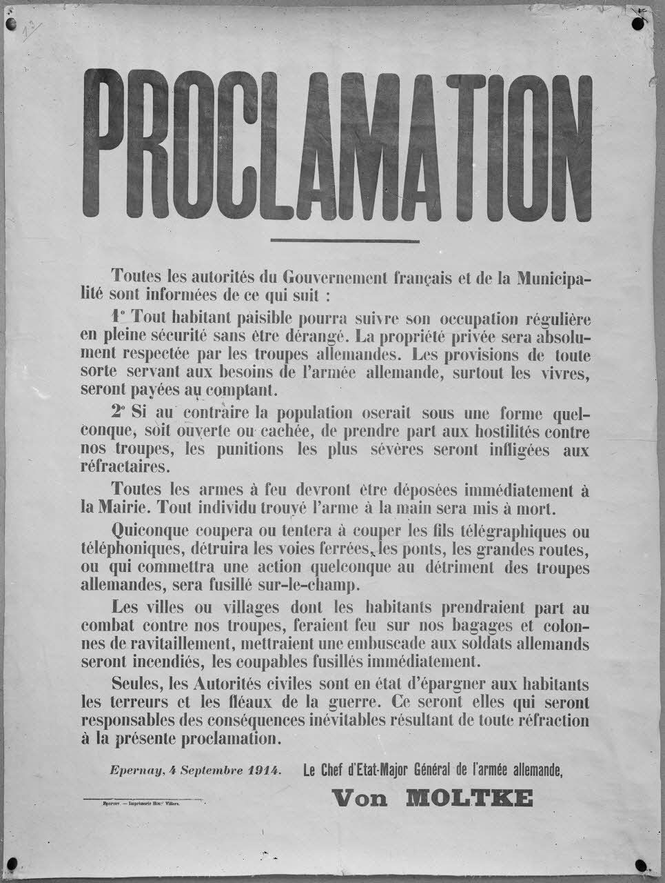 Paris. Musée franco-américain. Métro Leblanc. 6 avenue Malakoff. Proclamation. Von Moltke. Epernay. 4.7bre [septembre] 14. [légende d'origine]