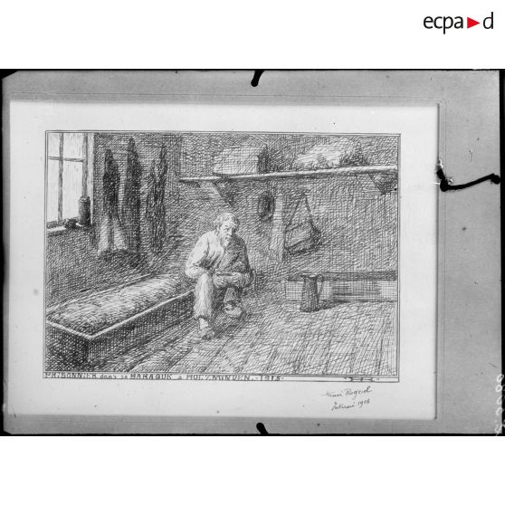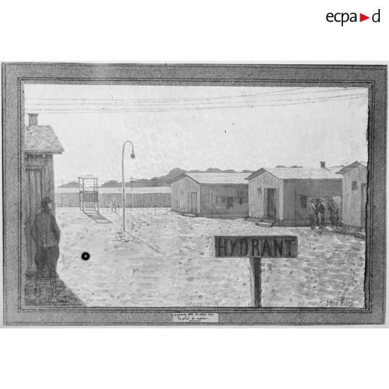 Paris. Musée Leblanc. Dessin de Rogerol pendant sa captivité au camp de Holzminden.