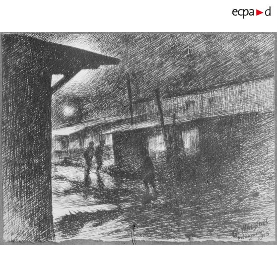 Paris. Musée Leblanc. Dessin d'Halbout, interné au camp d'Holzminden. Le soir au camp.