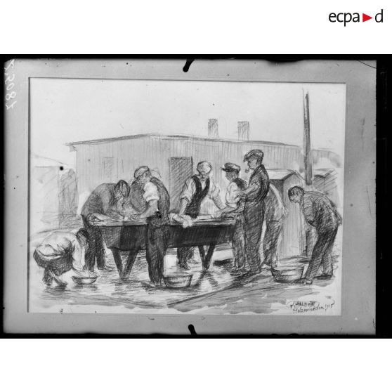 Paris. Musée Leblanc. Camp de Holzminden. Le lavoir par Halbout.