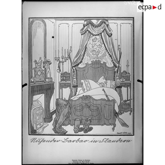 Paris. Musée Leblanc. Gravure allemande. "Barbare se reposant en Flandres".