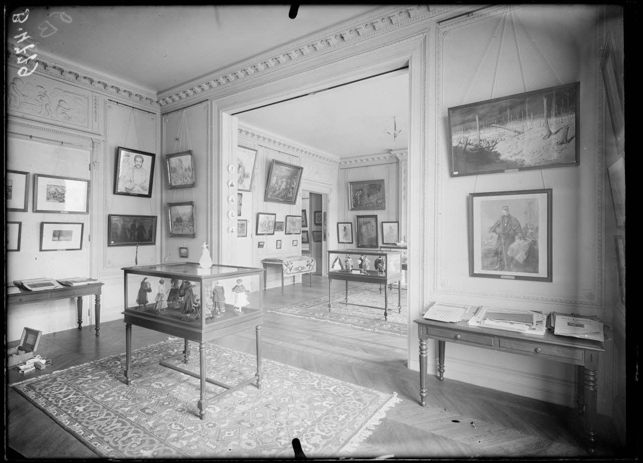 Aux Tuileries, où a lieu le salon des Armées, il prend des vues des oeuvres de différents artistes : tableaux de scènes de la guerre, portraits, croquis, maquettes de monuments commémoratifs, panneaux décoratifs.