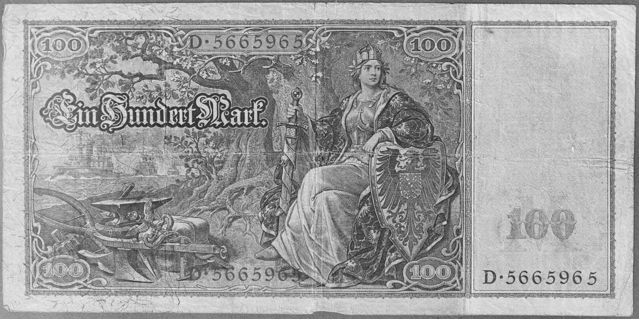 Paris. Musée Leblanc. Reproduction de billets de banque allemands. [légende d'origine]