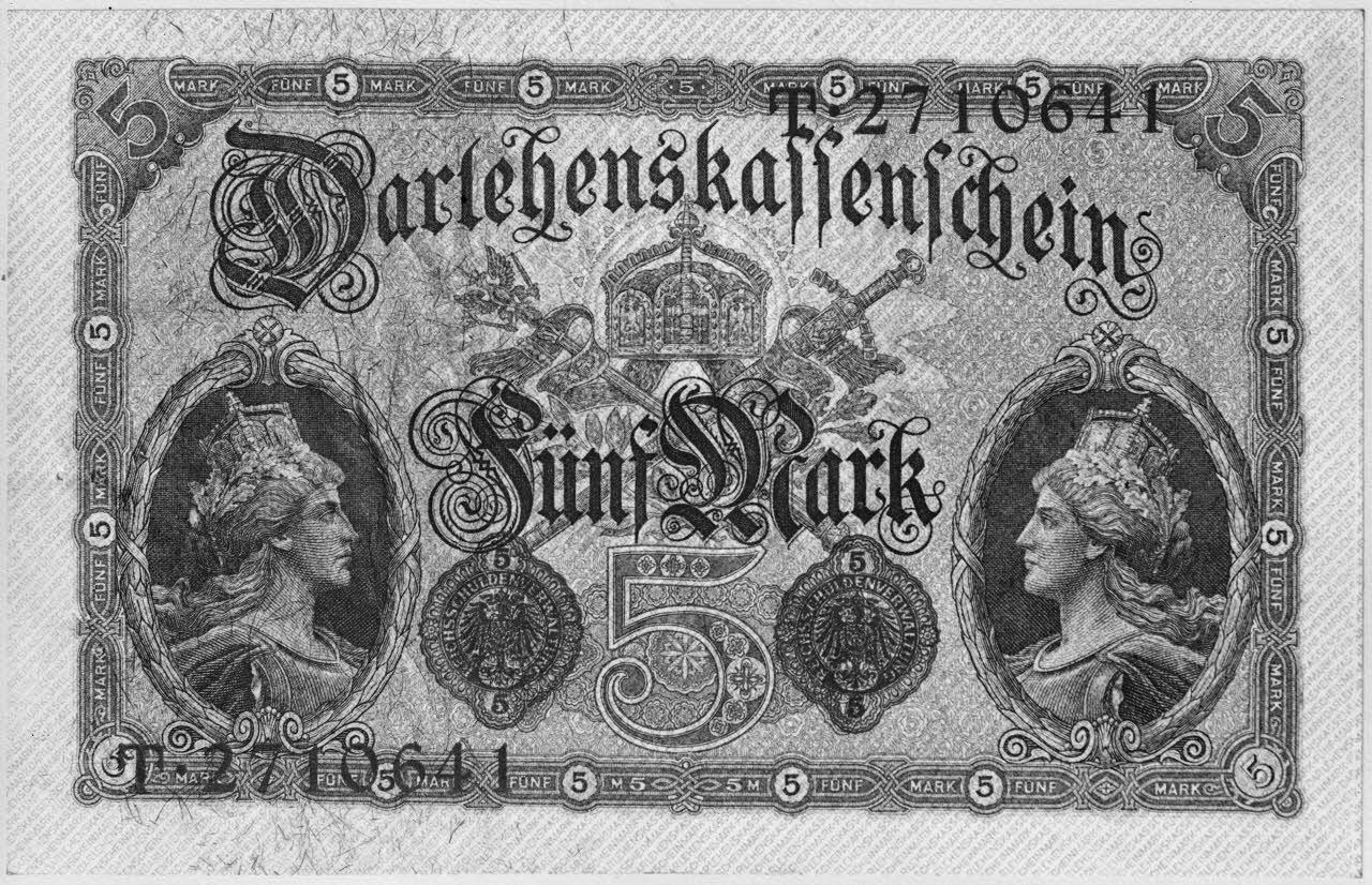 Paris. Musée Leblanc. Reproduction de billets de banque allemands. [légende d'origine]
