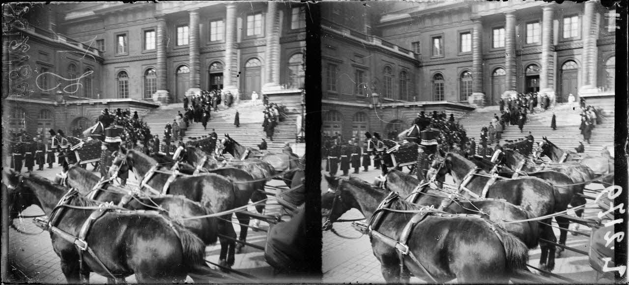Paris. Obsèque de Monsieur Baudouin. Premier président de la Cour de Cassation. La levée du corps au Palais de justice. [légende d'origine]