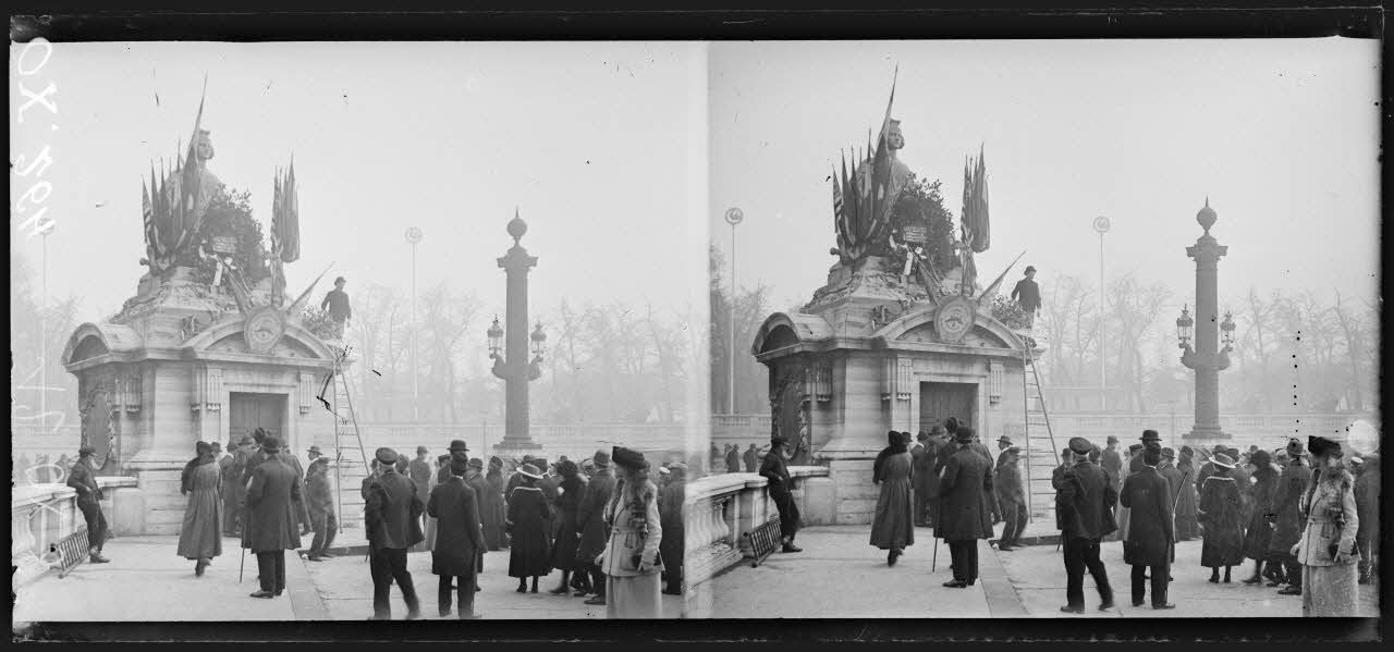 Paris, place de la Concorde, la statue de Lille, le jour de la délivrance de la ville, Lillois devant la statue.