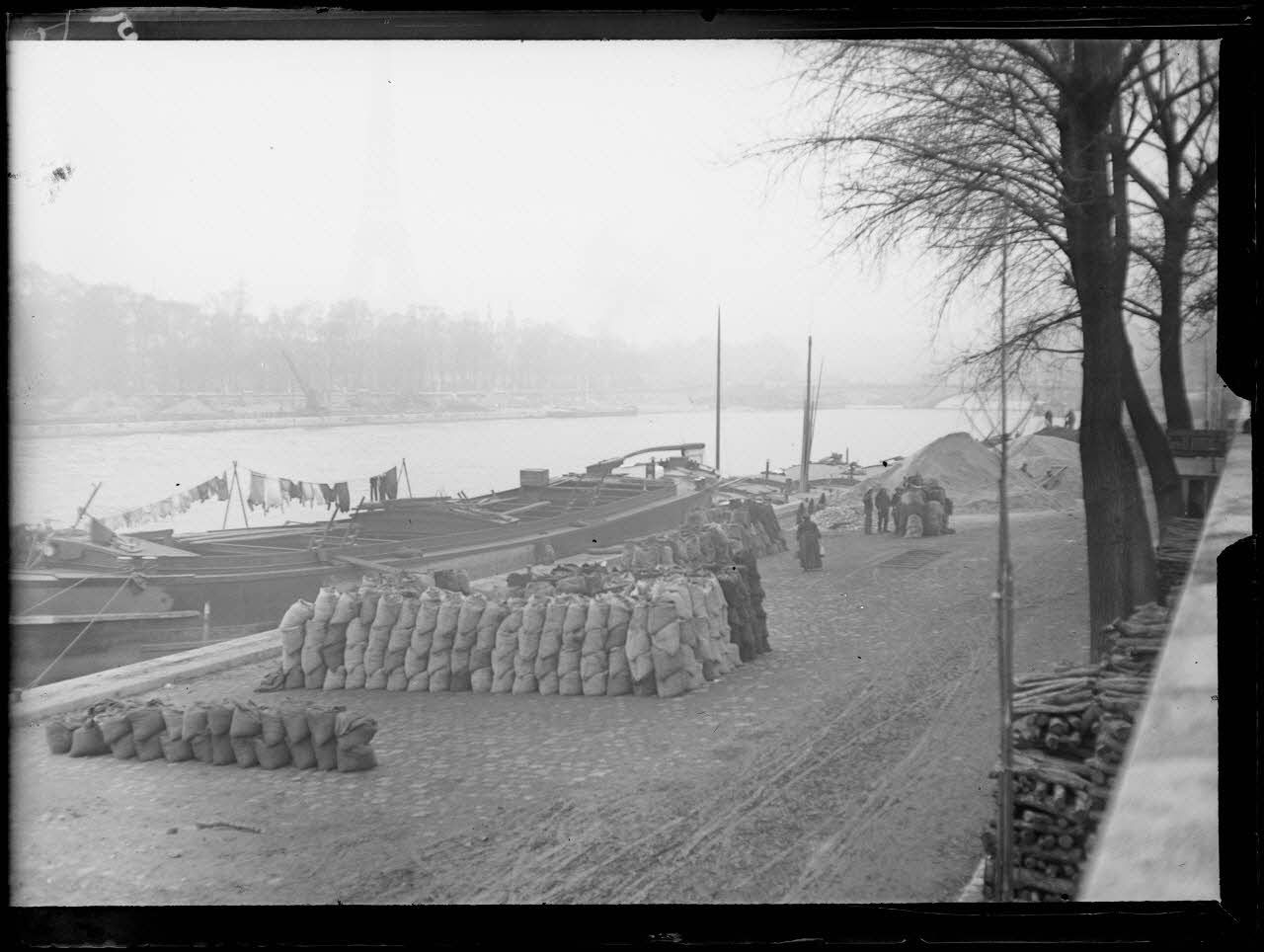 Paris quai du cours la reine, mise en sac du charbon. [légende d’origine]