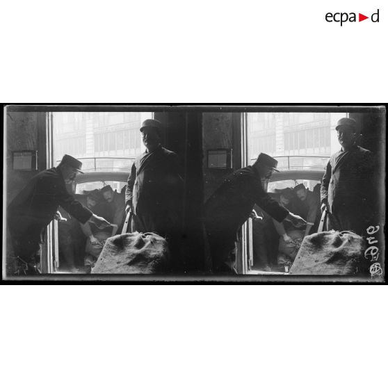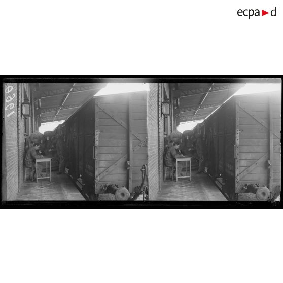 Paris. Reuilly. Mise en wagon des sacs de colis postaux.