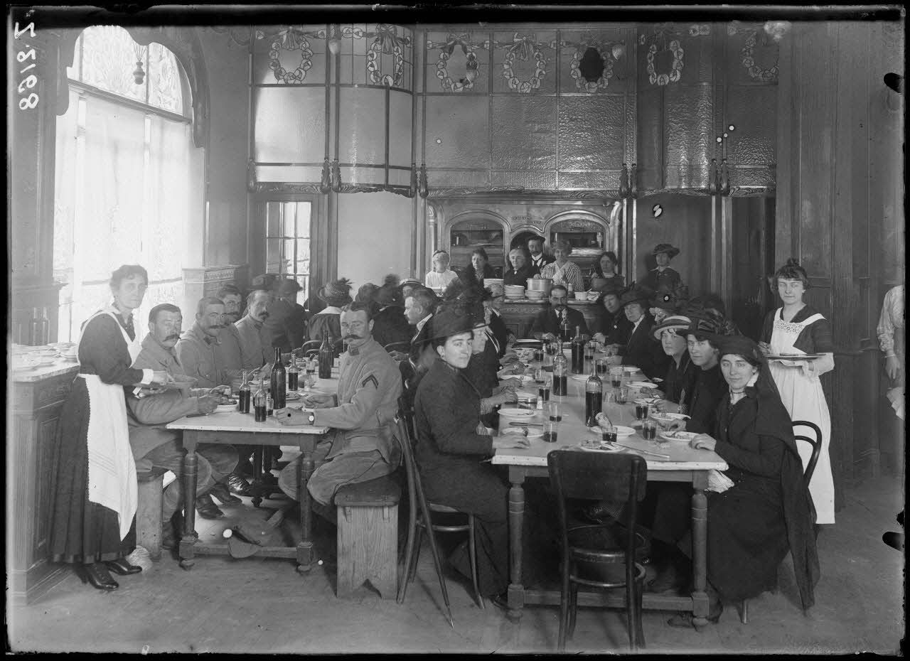 Paris rue de Presbourg. Restaurant à prix réduits La Familiale, installé à l'hôtel Mercedes pour les réfugiés des régions envahies. [légende d'origine]
