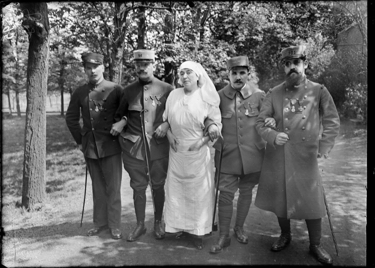 Paris. Rue de Reuilly 75. Centre de rééducation des aveugles. Promenade dans le parc. [légende d'origine]