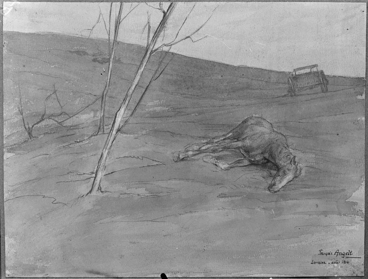 Paris, salon des Armées, Cheval mort, aquarelle de Angeli. [légende d’origine]